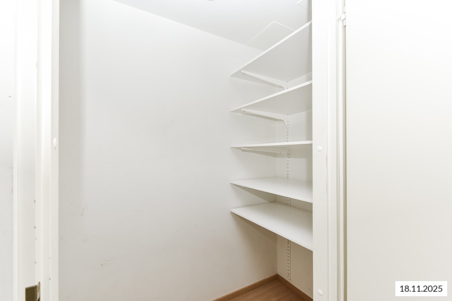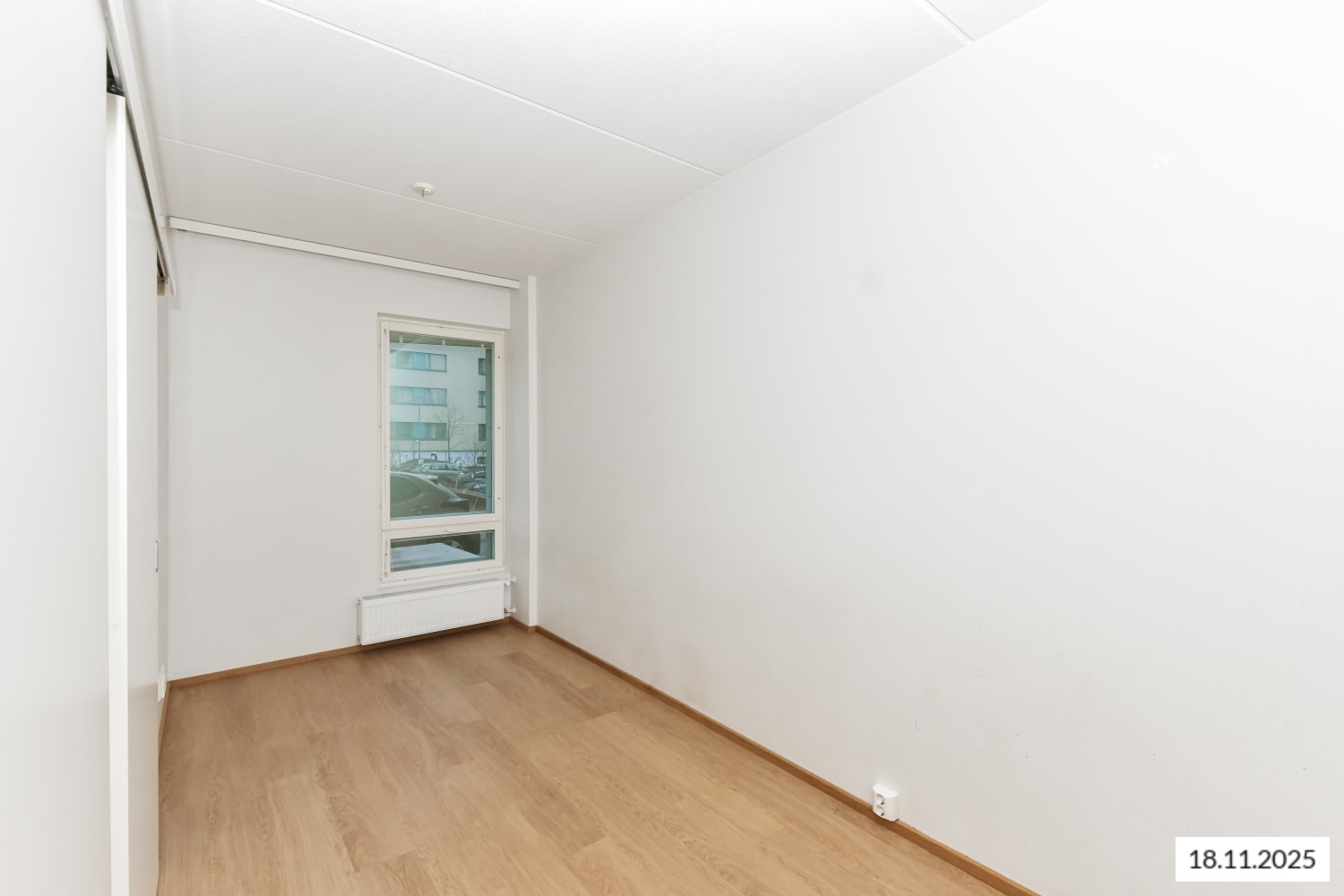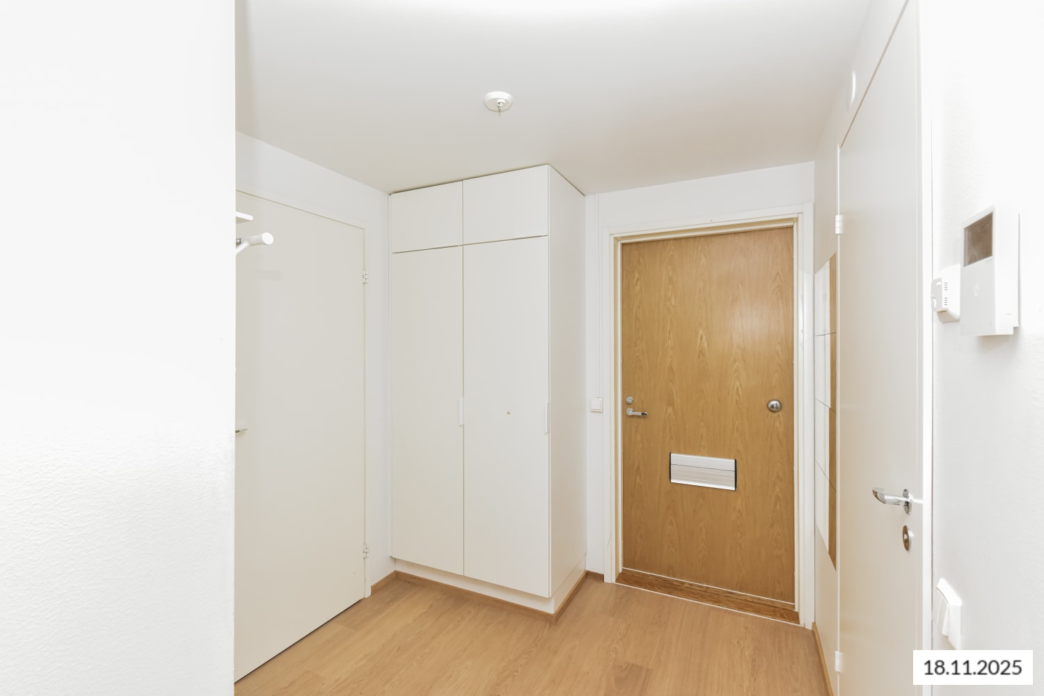 Kauniin kaksion keittiötila ja olohuone muodostavat selkeän ja avaran oleskelutilan. Olohuoneesta avautuu ranskalainen parveke pihan puolelle. Makuuhuone on erotettu olohuoneesta tilaa säästävillä liukuovilla ja käynti sinne käy kätevästi sängyn molemmilta puolilta. Harrastusvälineiden ja muiden tavaroiden säilytystä varten asunnossa on noin 2,5 neliön varastotila. Kellaritiloissa tai vintillä ei ole huoneistokohtaista irtaimistovarastoa.