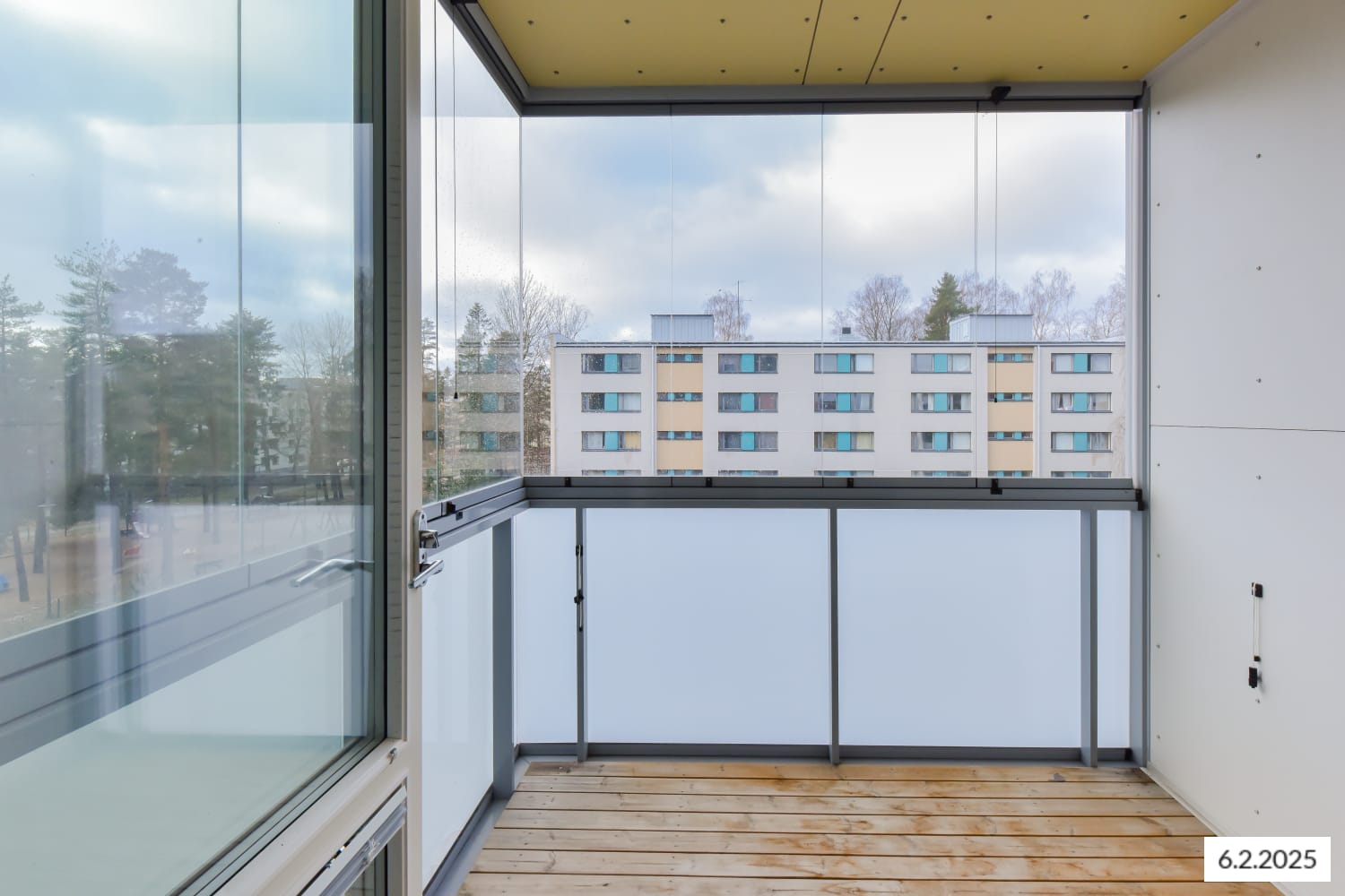 Valoisan pikkukodin pohjaratkaisu on selkeä ja käytännöllinen. Keittiötila yhdistyy oleskelutiloihin ja olohuoneesta pääsee pihan puolelle suuntaavalle lasitetulle parvekkeelle. Harrastusvälineiden ja muiden tavaroiden säilytystä varten asunnossa on noin 2,5 neliön varastotila. Kellaritiloissa tai vintillä ei ole huoneistokohtaista irtaimistovarastoa.