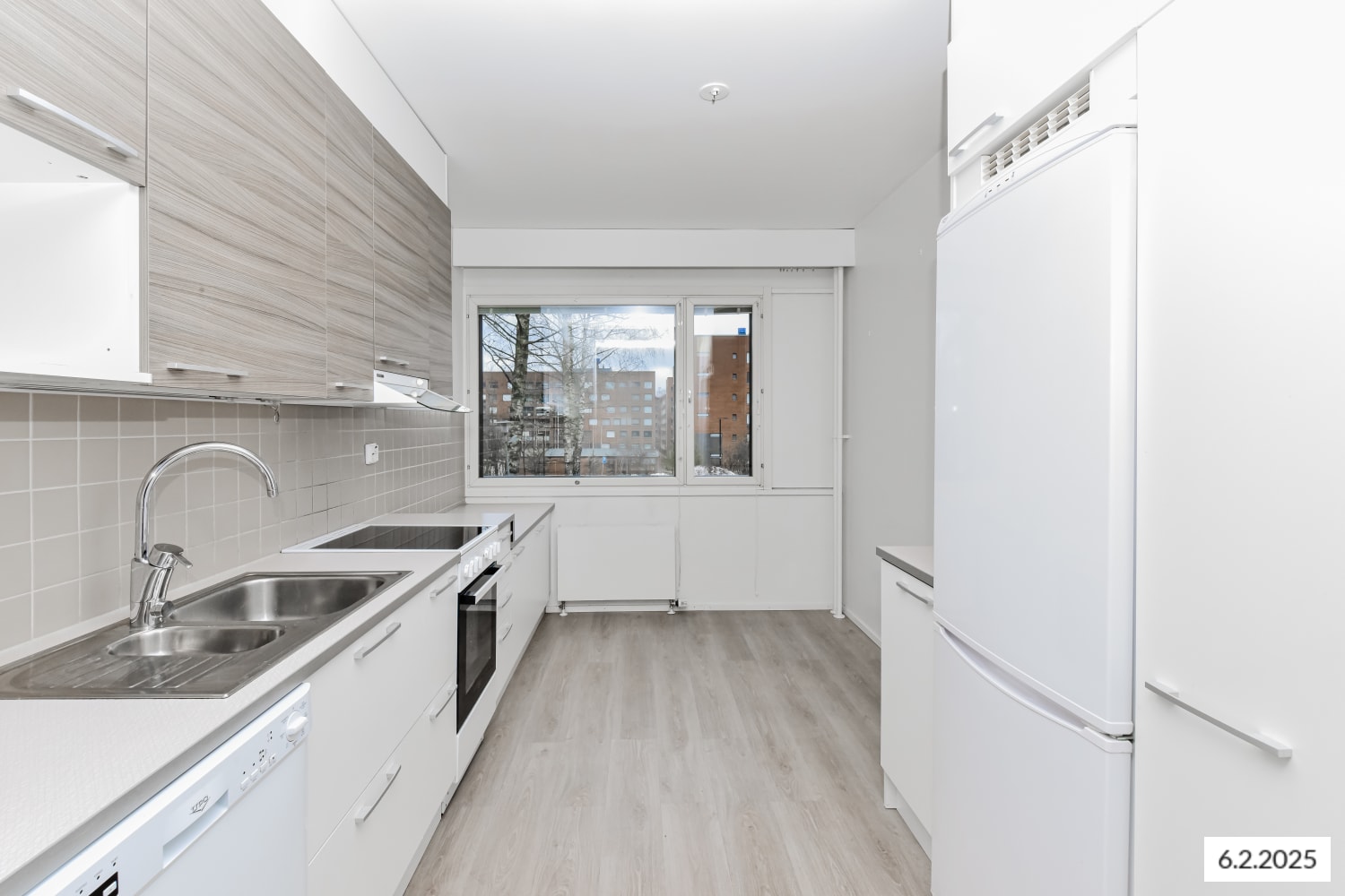 Tilava keittiö ja lasitettu parveke