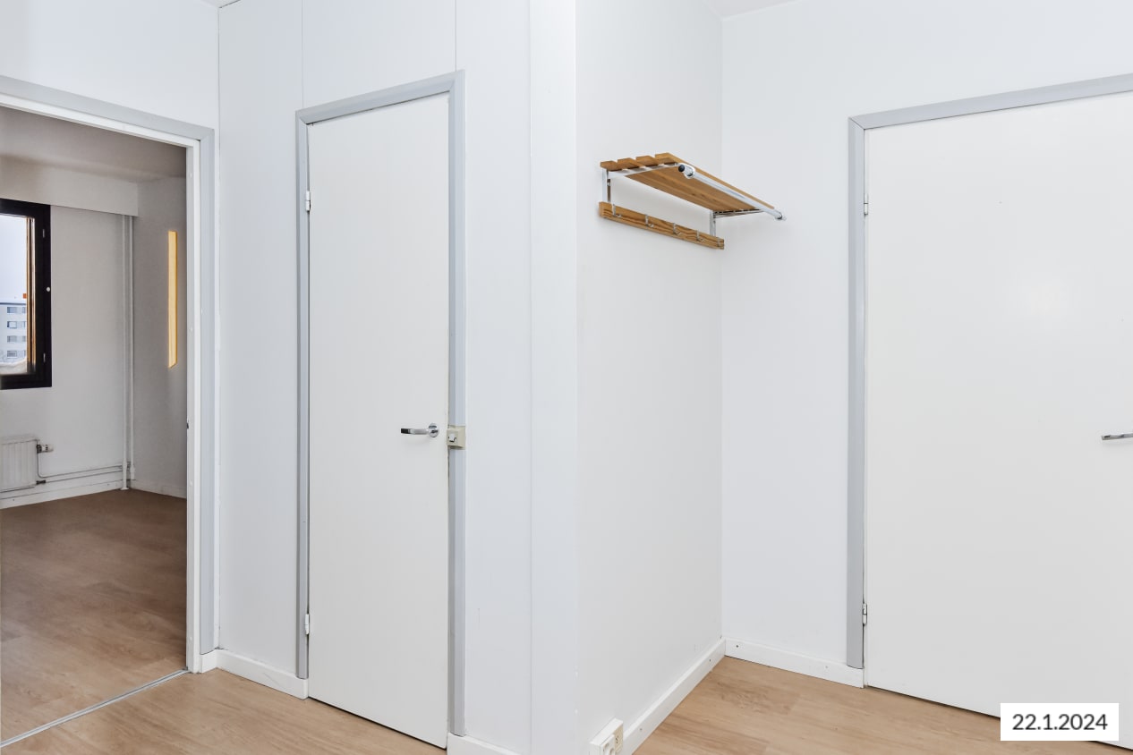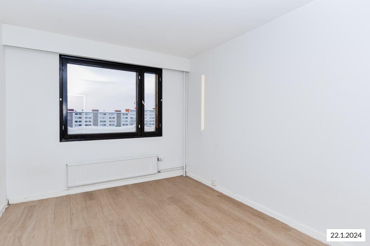 Myyrmäen koulun ja Vaskivuoren lukion vieressä sijaitsevassa perinteisessä 70-luvun alun kerrostalossa on vapautunut kodikas läpitalon kolmio. Pohjaratkaisussa olohuoneen merkitys on korostunut ja säilytystila on keskitetty eteiseen. Parvekkeelta avautuu näkymä länteen vehreän pihan puolelle ja keittiön ikkunasta näkee pitkälle itään. Asuinhuoneiden lattioissa on vaaleat laminaatit ja siisti kylpyhuone on kauttaaltaan kaakeloitu.