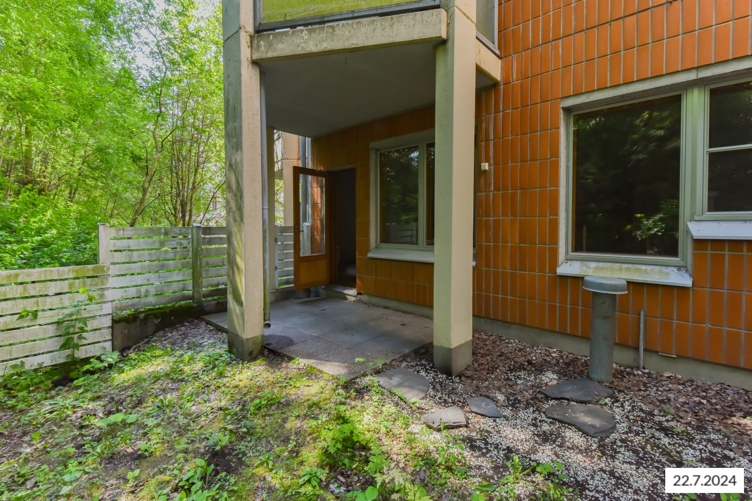 Tämän tilavan kaksion pohjaratkaisu on persoonallinen ja toimiva. Asunnon ehdoton valtti on oma takapiha, jossa on mukava viettää lämpiä kesäpäiviä tai vilvoitella oman saunan löylyjen jälkeen. Säilytystilaa on runsaasti erillisen vaatehuoneen ansiosta. Asunnossa on tilavaraukset astianpesukoneelle, mikroaaltouunille ja pesutornille.