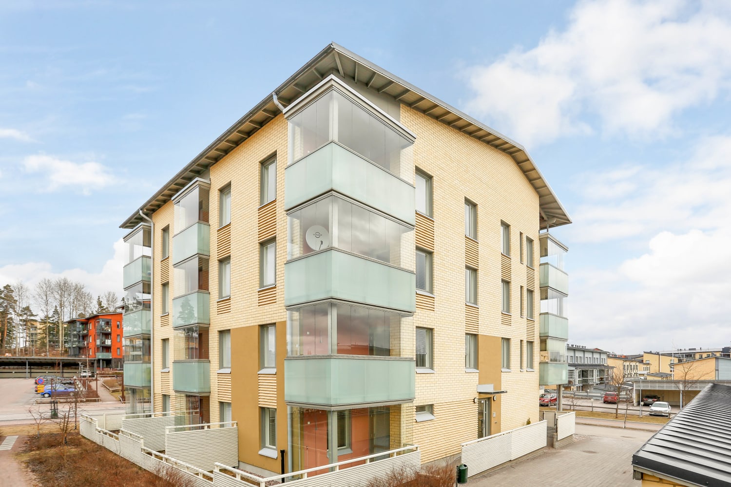 Taloyhtiössä on kolme aurinkoisella etelärinteellä sijaitsevaa nelikerroksista keltatiilitaloa viihtyisine pihoineen. Maantasoasunnoissa on omat piha-alueet ja ylemmissä kerroksissa on kahteen suuntaan aukeavat lasitetut parvekkeet.