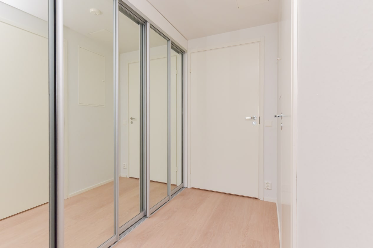 Fiksupohjaisessa vuokra-asunnossa kalusteet löytävät paikkansa vaivattomasti, mutta toisaalta valinnanvaraakin sisustamisessa on. Esimerkiksi keittokomeron vieressä olevaan tilaan mahtuu varsin hyvin pöydän sijasta sänky, ja pöydän voi sijoittaa kylpyhuoneen vastaiselle seinälle. Suojaisa sisäänvedetty parveke avautuu lämpimään ilta-aurinkoon.