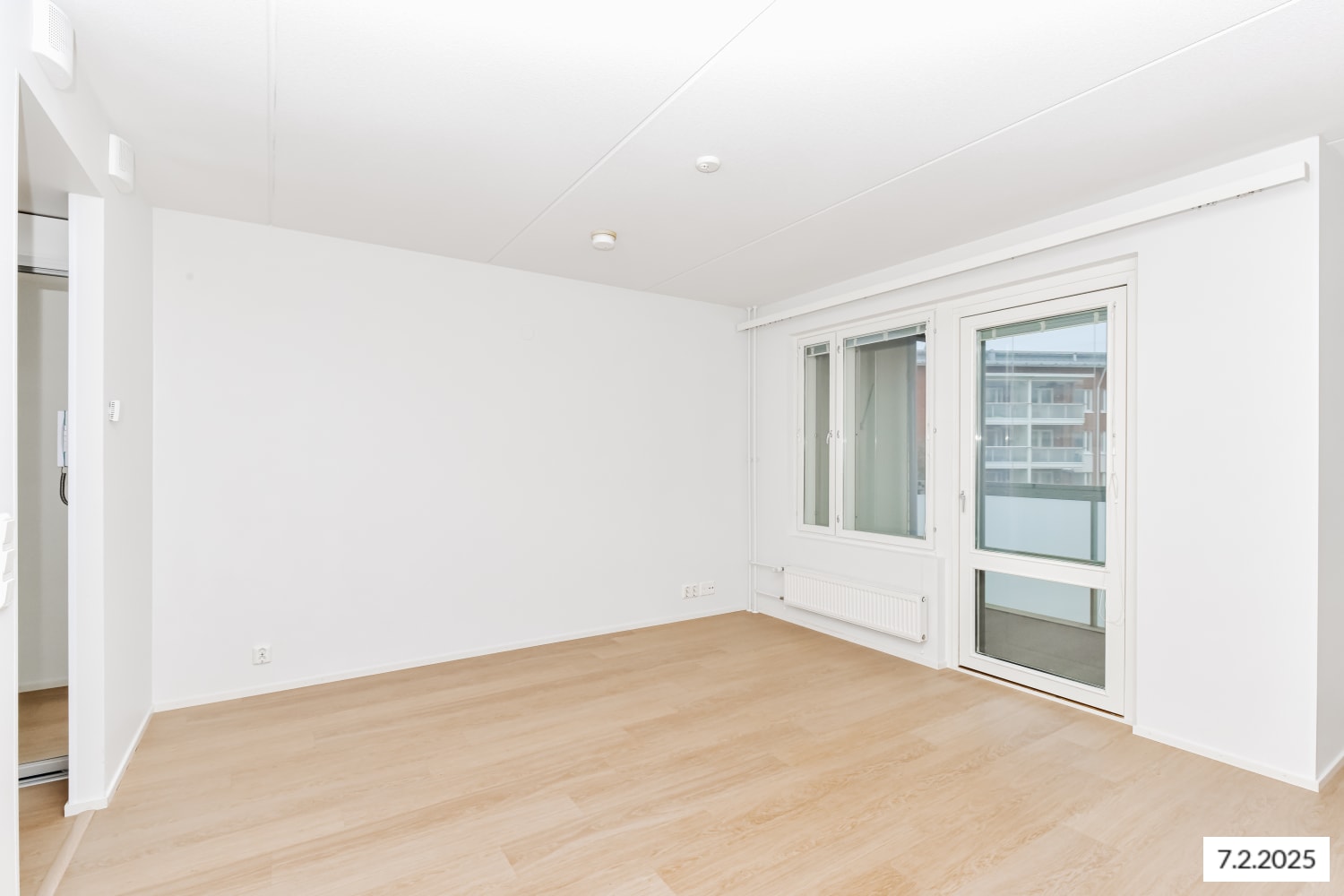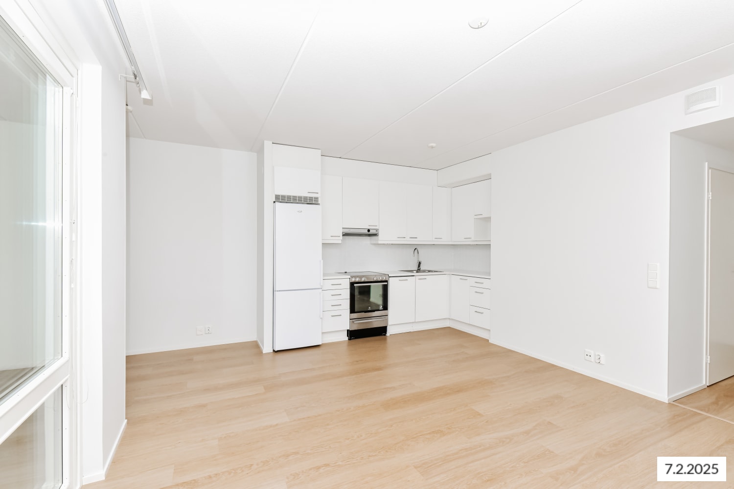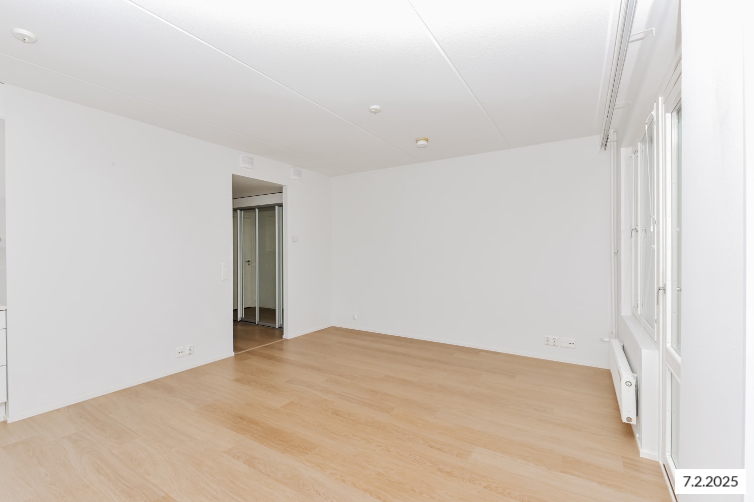 Fiksupohjaisessa vuokra-asunnossa kalusteet löytävät paikkansa vaivattomasti, mutta toisaalta valinnanvaraakin sisustamisessa on. Esimerkiksi keittokomeron vieressä olevaan tilaan mahtuu varsin hyvin pöydän sijasta sänky, ja pöydän voi sijoittaa kylpyhuoneen vastaiselle seinälle. Suojaisa sisäänvedetty parveke avautuu ihanasti eteläaurinkoon.