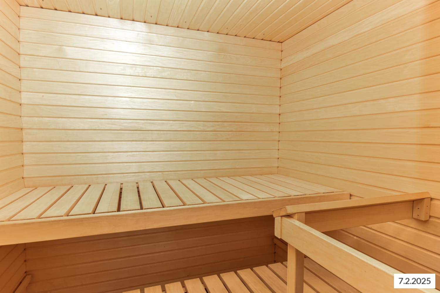Valkoisella kaakeloidussa kylpyhuoneessa on varpaiden alla ylellinen lattialämmitys ja saunan ilmettä nostaa valokuituvalaistus. Kylpyhuoneessa on paikka myös pyykkikoneellesi.