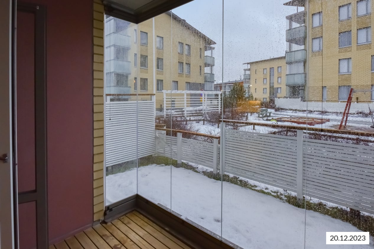 Fiksupohjaisessa vuokra-asunnossa kalusteet löytävät paikkansa vaivattomasti, mutta toisaalta valinnanvaraakin sisustamisessa on. Esimerkiksi keittokomeron vieressä olevaan tilaan mahtuu varsin hyvin pöydän sijasta sänky, ja pöydän voi sijoittaa kylpyhuoneen vastaiselle seinälle. Asunnon valttina on oma piha ja viihtyisä lasitettu terassi.