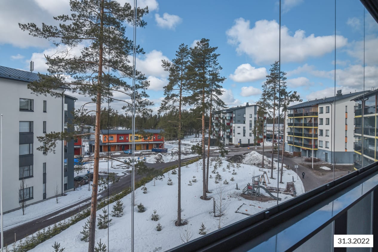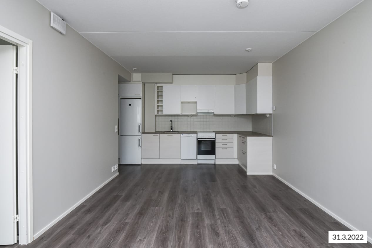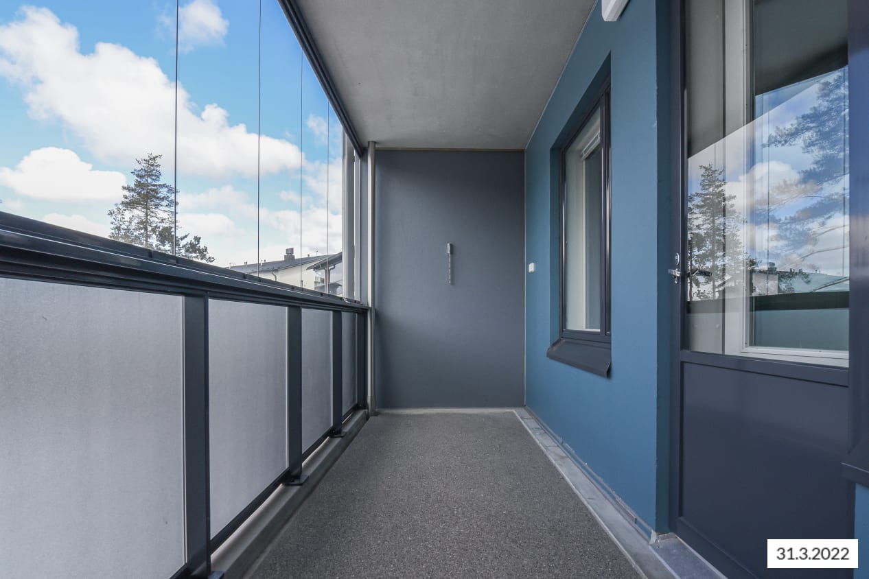 Käytännöllisen kodin avoin keittiö ja olohuone muodostavat yhdessä avaran oleskelutilan, joka on helppo kalustaa mieleiseksi. Tilavassa makuuhuoneessa on mukavasti kaappitilaa vaatesäilytykselle. Lasitettu parveke avautuu ilta-auringon puolelle.