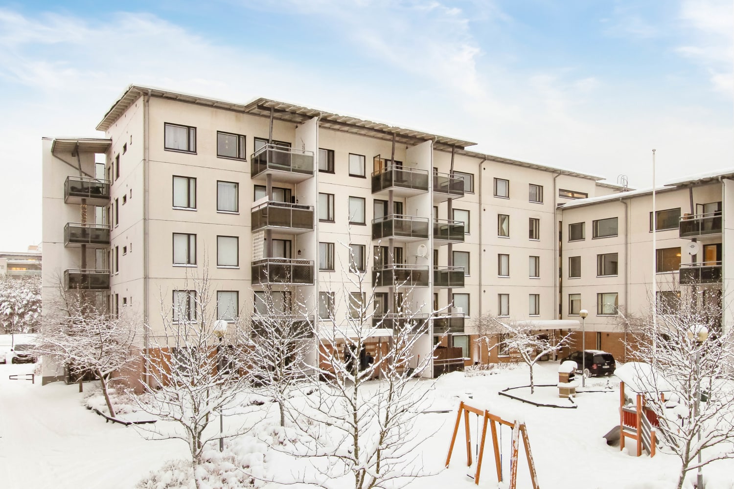 Viisikerroksisen talon kaikissa huoneistoissa on sauna ja parveke. Keittiöissä on tilavaraus astianpesukoneelle ja kylpyhuoneissa pesutornille.