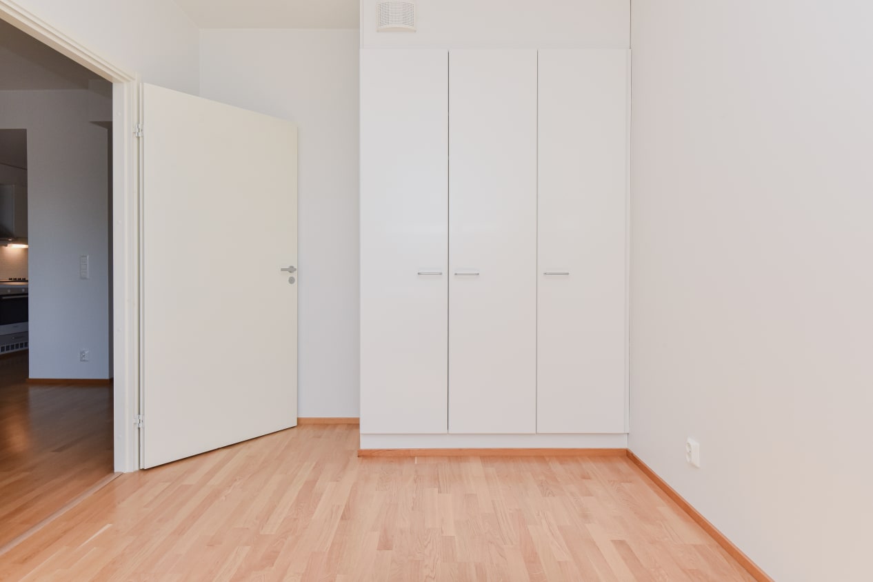 Vantaanjoen rantamaisemissa uusia asukkaitaan odottelevan kaksion hillityt pintamateriaalit, oma sauna sekä tilava, eteläkaakkoon avautuva lasitettu parveke tekevät asunnosta tavoittelemisen arvoisen. Pohjaratkaisu on selkeä ja toimiva. Vaaleapintainen keittokomero on osin avoin olohuoneen puolelle ja säilytystila on keskittynyt makuuhuoneeseen ja eteiseen.