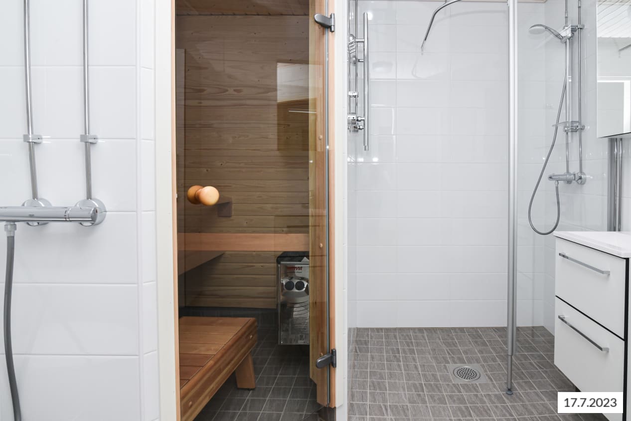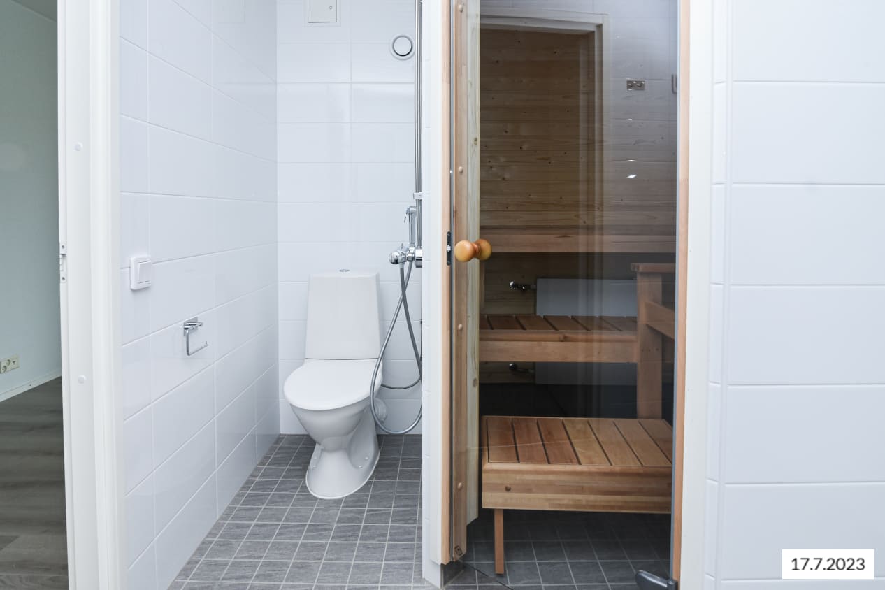 Selkeälinjaisen kaksion sydän on olohuoneen ja keittokomeron muodostama oleskelutila, josta on käynti myös parvekkeelle. Heti keittokomeron vieressä on ikkunallinen ruokailutila ja tarvittaessa kokkausalueen saa katseilta piiloon käytännöllisten liukuovien taakse. Makuuhuoneessa on mukavasti kaappitilaa vaatesäilytykselle. Omassa saunassa voi nauttia rentoutumisen hetkistä haluamansa aikataulun mukaan.