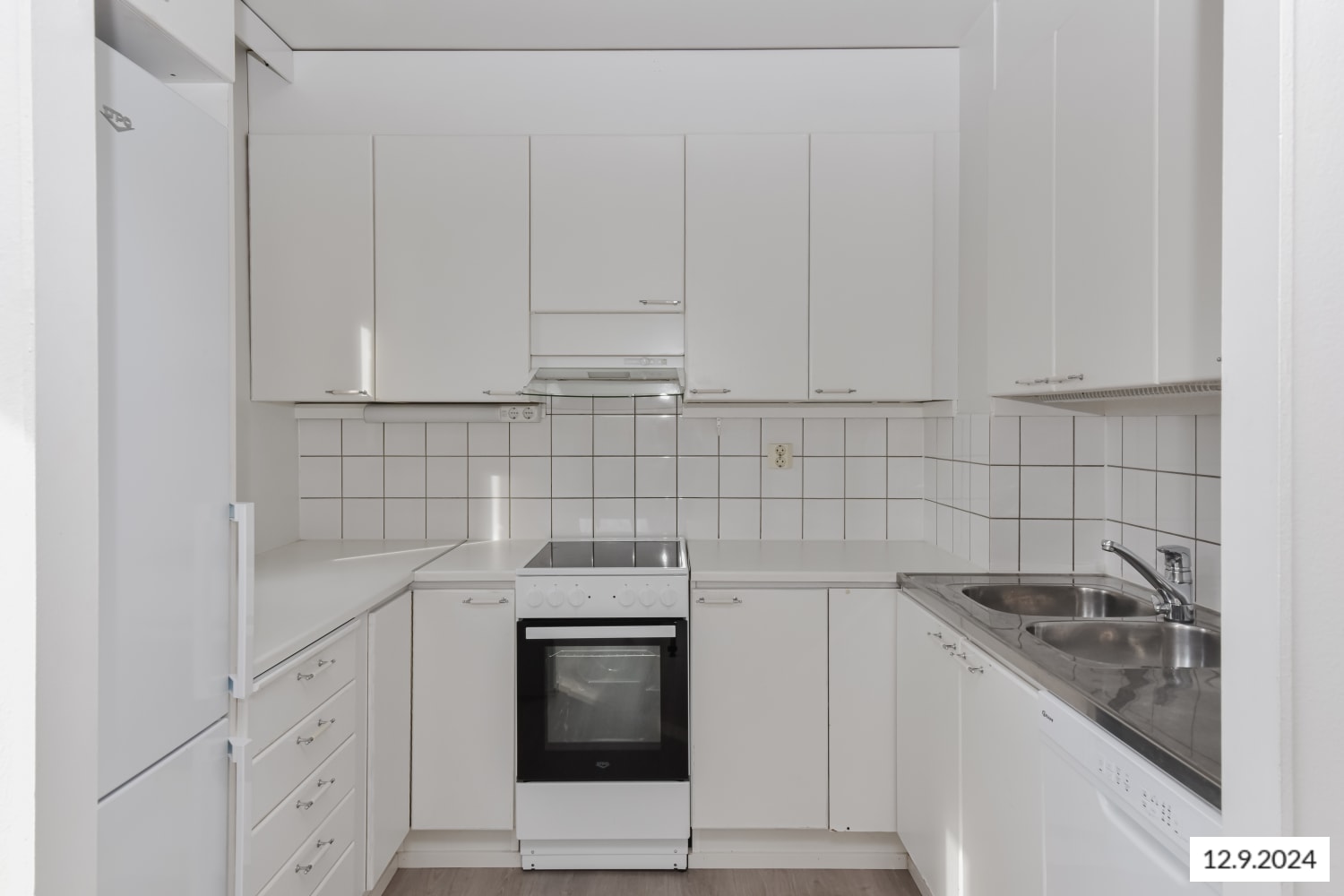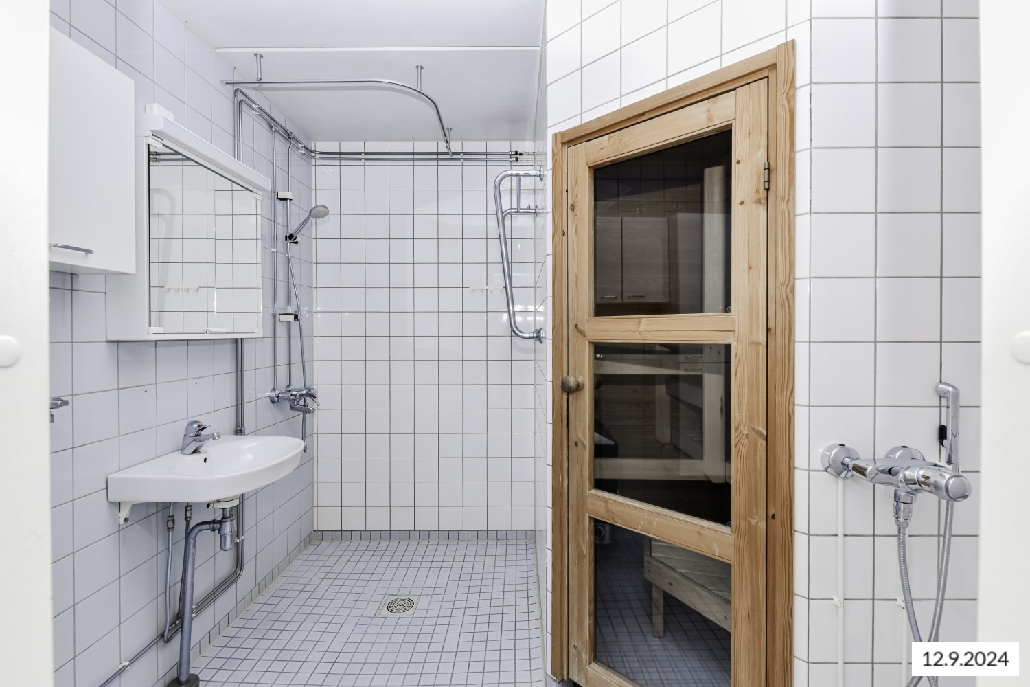 Selkeälinjaisen kaksion sydän on olohuoneen ja keittokomeron muodostama oleskelutila, josta on käynti myös parvekkeelle. Heti keittokomeron vieressä on ikkunallinen ruokailutila ja tarvittaessa kokkausalueen saa katseilta piiloon käytännöllisten liukuovien taakse. Makuuhuoneessa on mukavasti kaappitilaa vaatesäilytykselle. Omassa saunassa voi nauttia rentoutumisen hetkistä haluamansa aikataulun mukaan.
