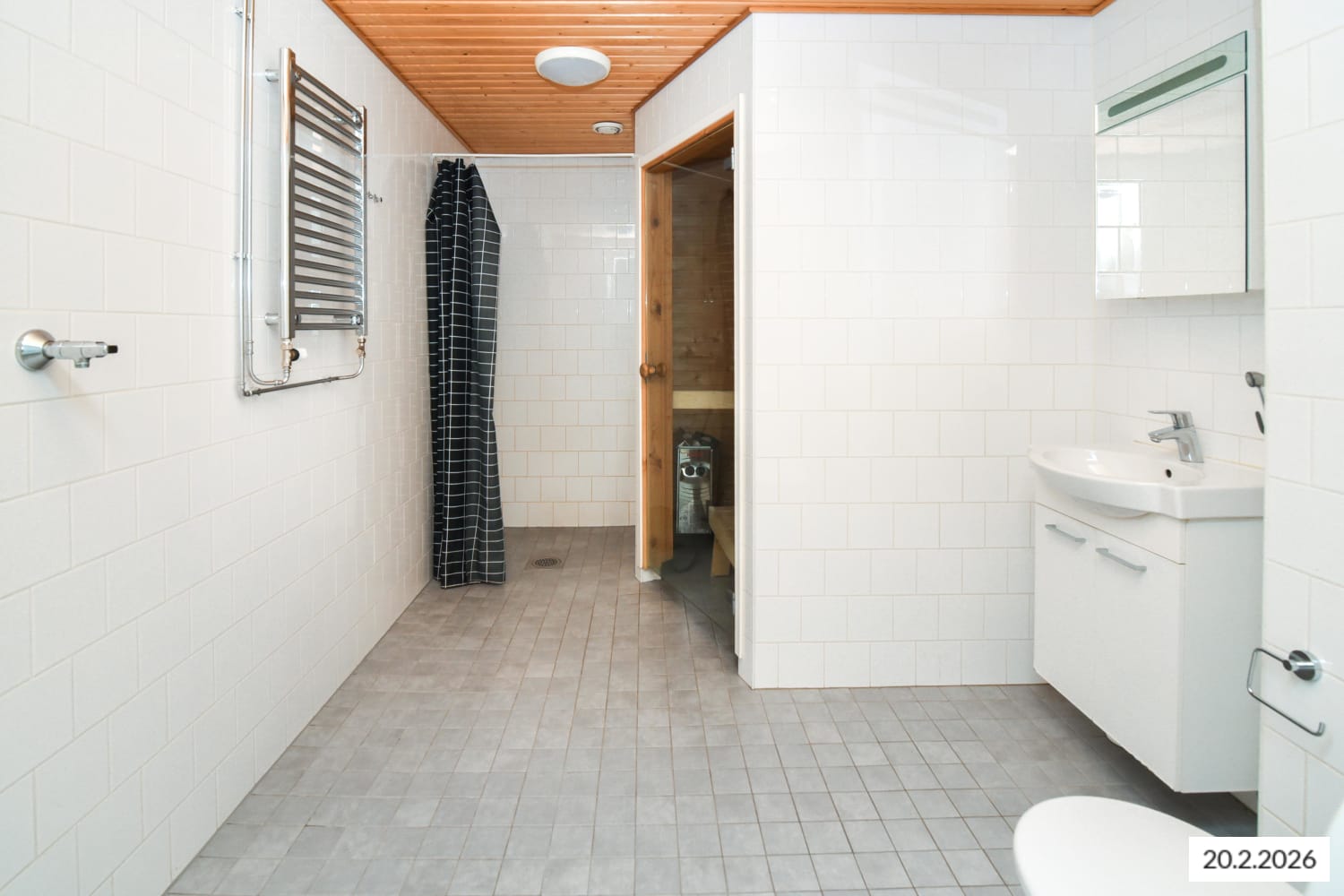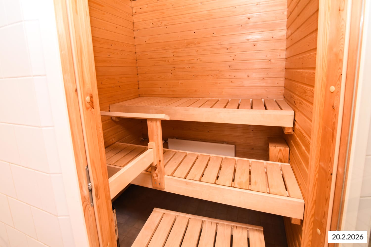 Selkeälinjaisen, sisäpihan puoleisen kolmion avoin, vaaleasävyinen saarekekeittiö ja olohuone muodostavat viihtyisän avaran oleskelualueen. Mukavaa lisätilaa löytyy ilta-aurinkoon aukeavalta lasitetulta parvekkeelta. Omassa saunassa löylyistä kelpaa nauttia.