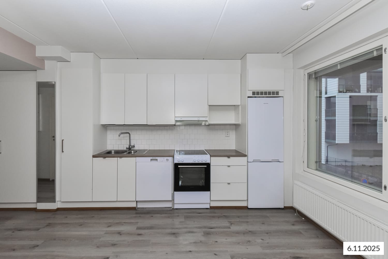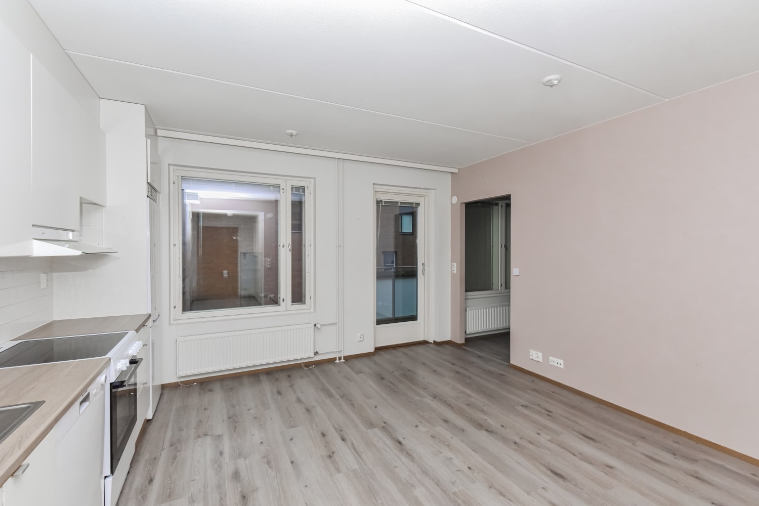 Selkeän kaksio avoin, vaaleasävyinen keittiö ja olohuone muodostavat kodin sydämen. Lisätilaa antaa aurinkoinen, lasitettu parveke, jossa on mukava nauttia vaikkapa aamukahvit. Makuuhuoneen yhteydessä on reilusti säilytystilaa erillisessä vaatehuoneessa.