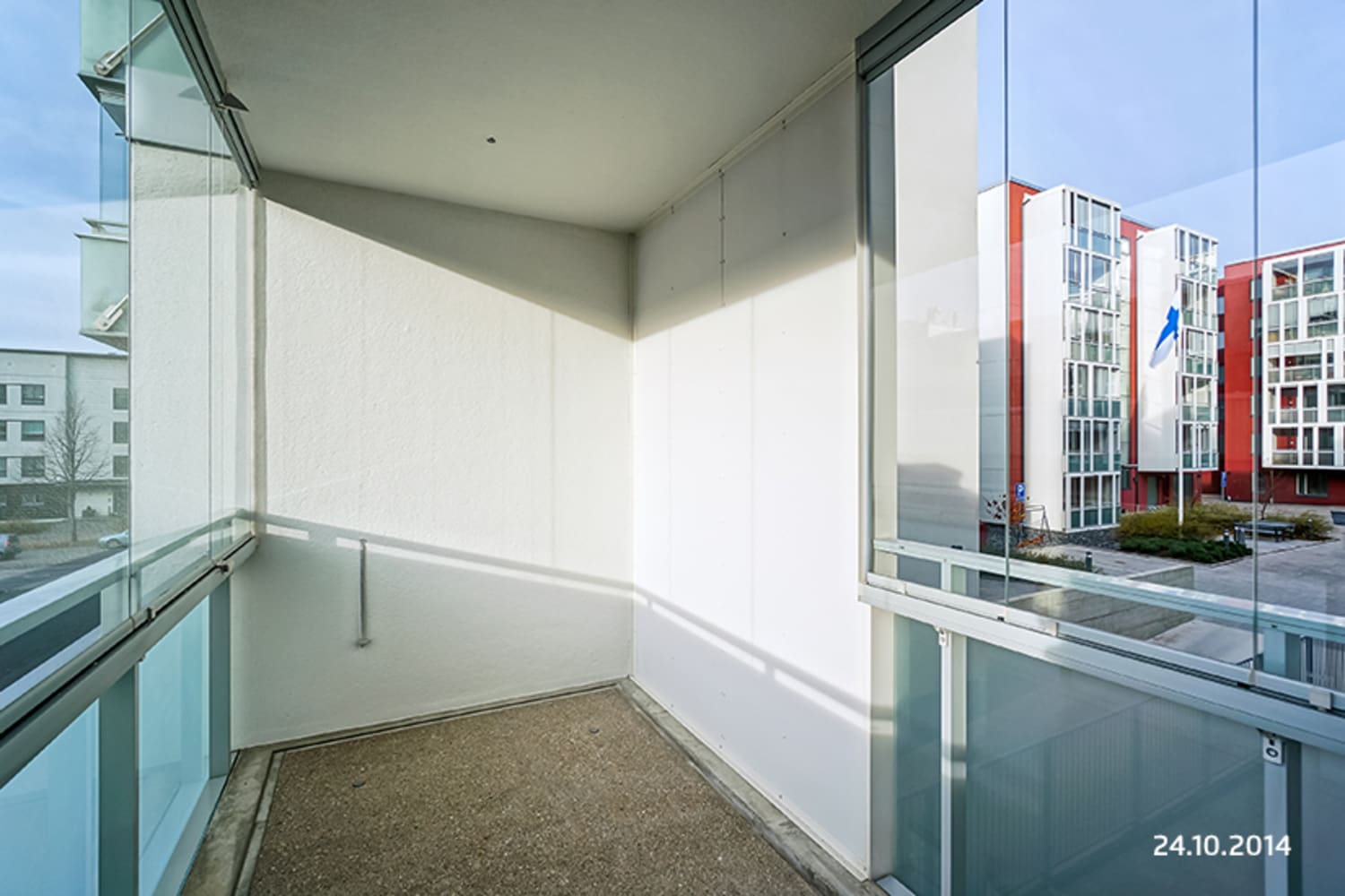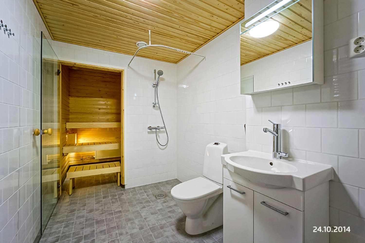 Käytännöllisen, talon kulmassa sijaitsevan kolmion ikkunat aukeavat kahteen ilmansuuntaan. Kodin sydämessä on olohuoneeseen avautuva vaaleasävyinen keittiö, josta löytyy oma paikka ruokapöydälle. Toisesta makuuhuoneesta on käynti aurinkoiselle lasitetulle parvekkeelle. Toisen makuuhuoneen yhteydessä on erillinen vaatehuone, jossa on mukavasti säilytystilaa. Omassa saunassa löylyistä kelpaa nauttia.