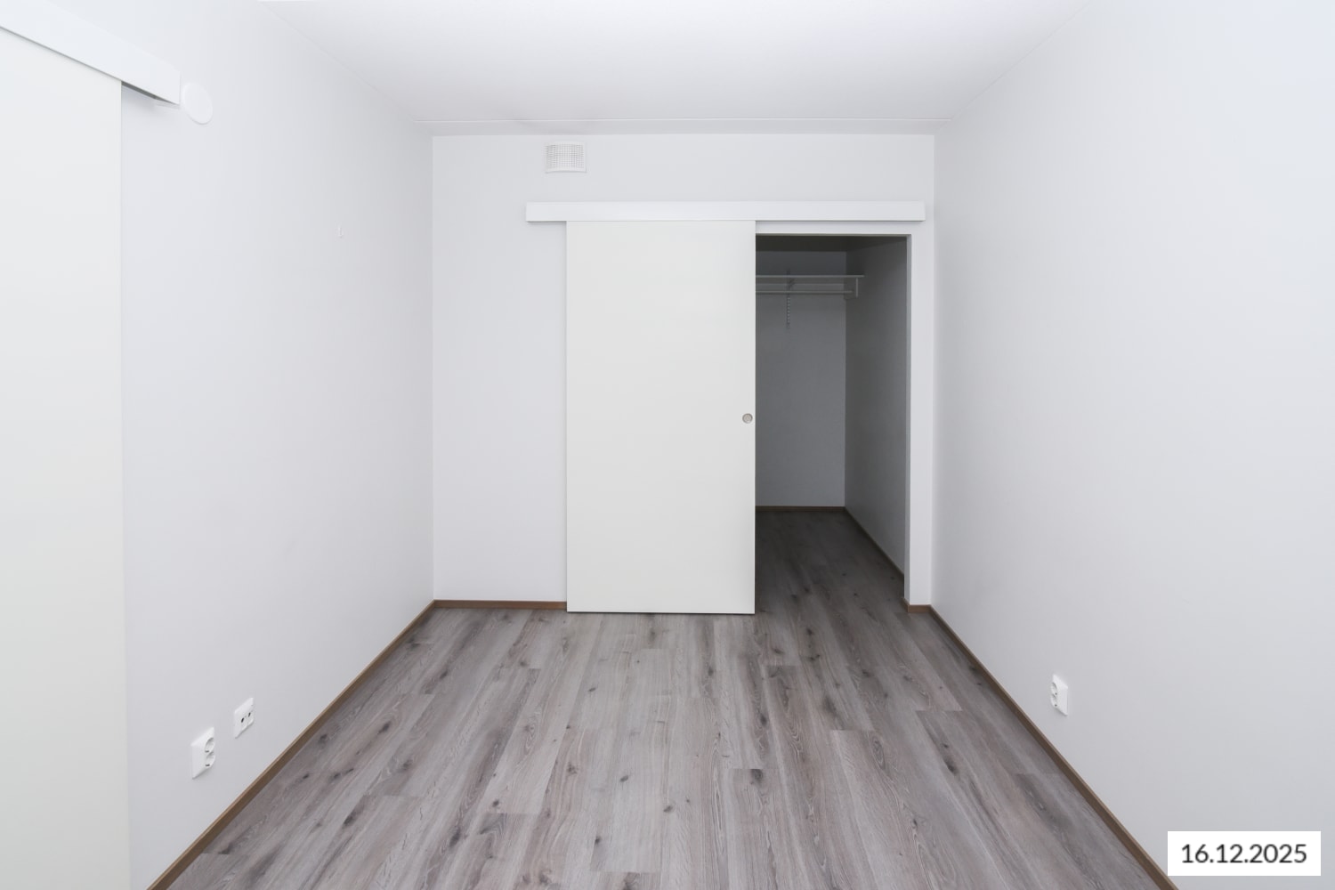 Asuinhuoneiden lattiamateriaalina on käytännöllinen harmaa laminaatti. Keittiön kaapistoissa on valkoiset ovet ja ylä- ja alakaappien välitila on laatoitettu kiiltävän valkoisilla laatoilla, jotka on ladottu ns. tiililadonnalla. Työtasot ovat vaalean puun sävyistä laminaattia. Varusteina on jääkaappipakastin, lattialiesi keraamisine tasoineen ja astianpesukone. Kodinkoneet ovat valkoisia.