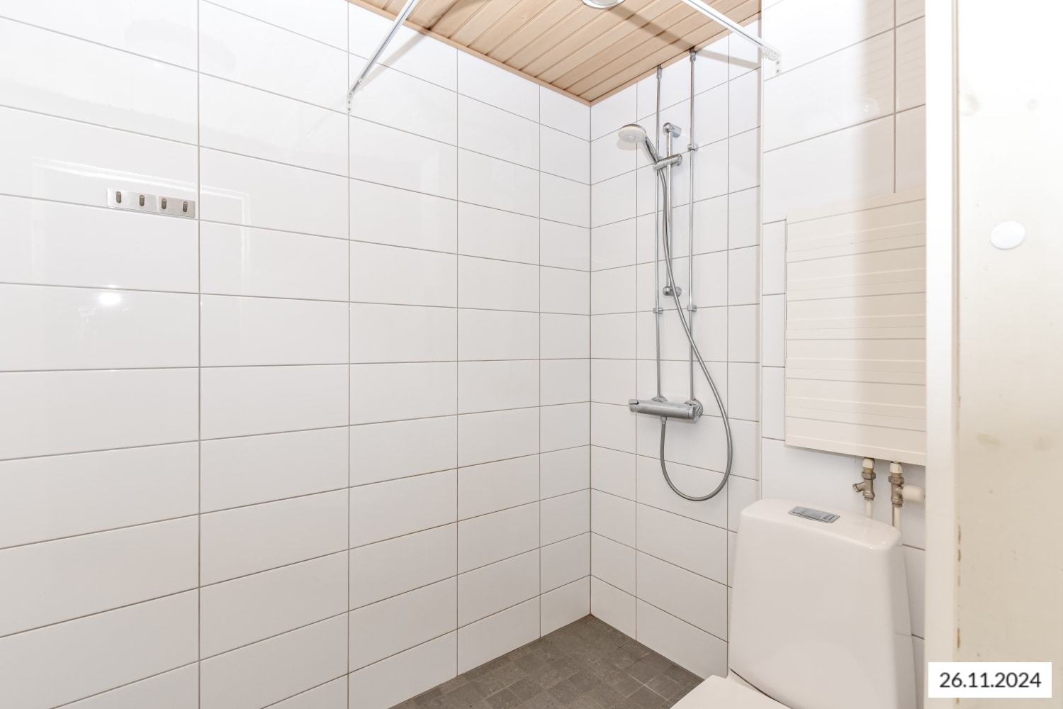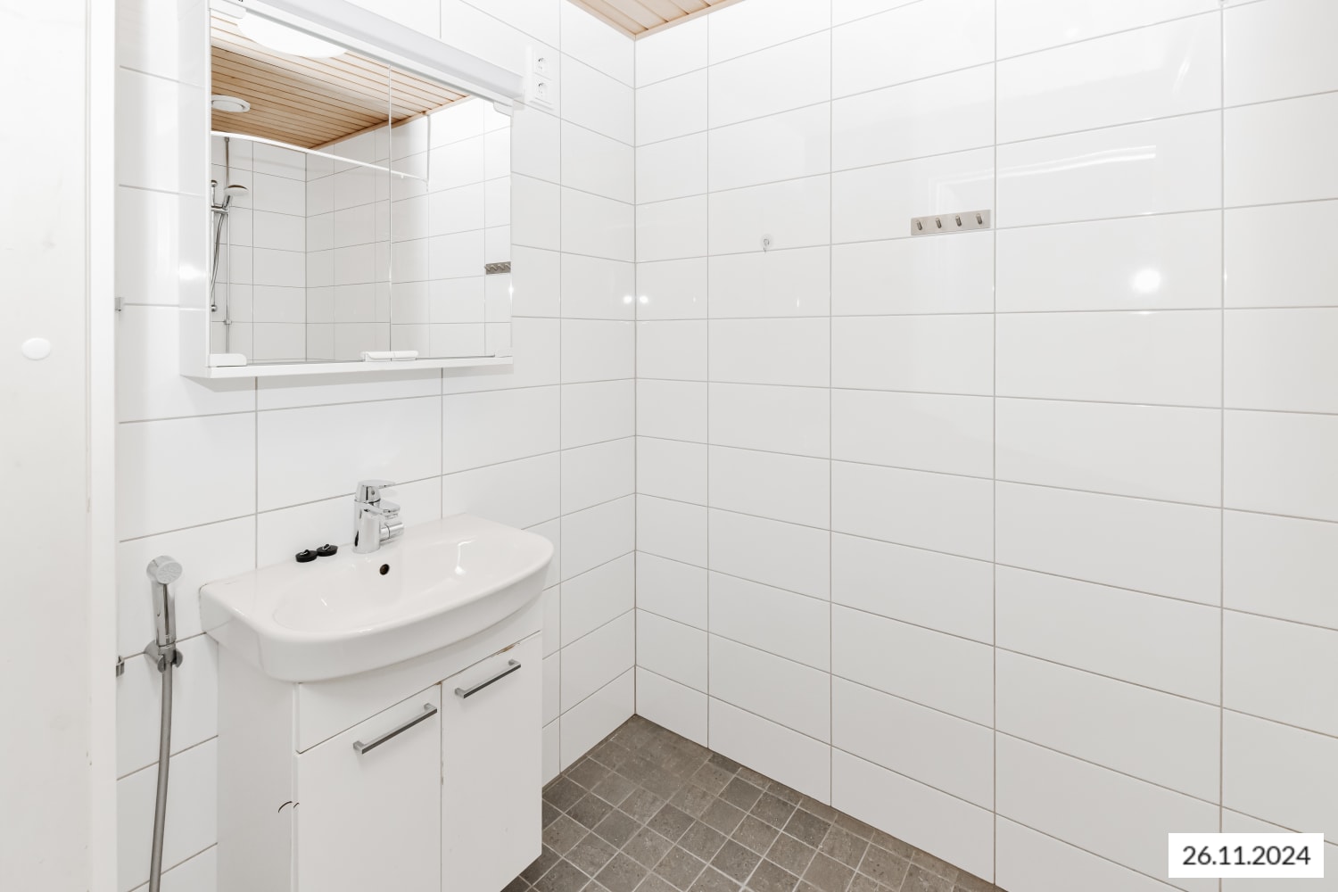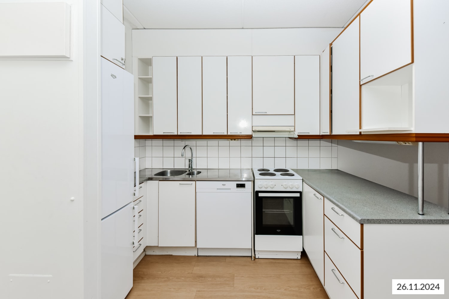 Keittiössä on astianpesukone, jääkaappipakastin, lattiauuni ja keraaminen liesi. Laatoitetussa kylpyhuoneessa on liitännät pyykinpesukoneelle. Olisiko tässä uusi vuokrakotisi?