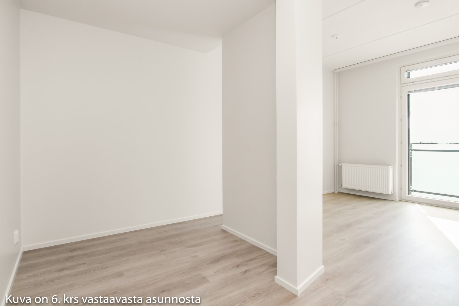 Soman pikkukodin pohjaratkaisu on selkeä ja avoin. Keittiö ja olohuone yhdistyvät viihtyisäksi oleskelualueeksi, joka on helppo kalustaa kodikkaasti. Tilan lattia on vaaleaa laminaattia. Seinät ovat valkoiset. Keittiökaapistot ja kaikki komerot ovat kotimaista Kankarin kalusteen tuotantoa. Keittiössä kaapistojen ovet ovat raikkaan valkoiset ja vetimet ovat harjattua messinkiä. Ylä- ja alakaappien välisessä tilassa on harmaa laminaatti ja työtaso on samaa sävyä. Varusteena on on jääkaappi ja liesi. Kokonaan laatoitetun kylpyhuoneen seinät ovat valkoiset ja lattiat vaalean harmaat. Kylpyhuoneen kalusteet ovat valkoisia. Pesukoneelle ja kuivausrummulle on varaus. Kodin valoisuutta lisää etelään suuntautuva ranskalainen parveke.