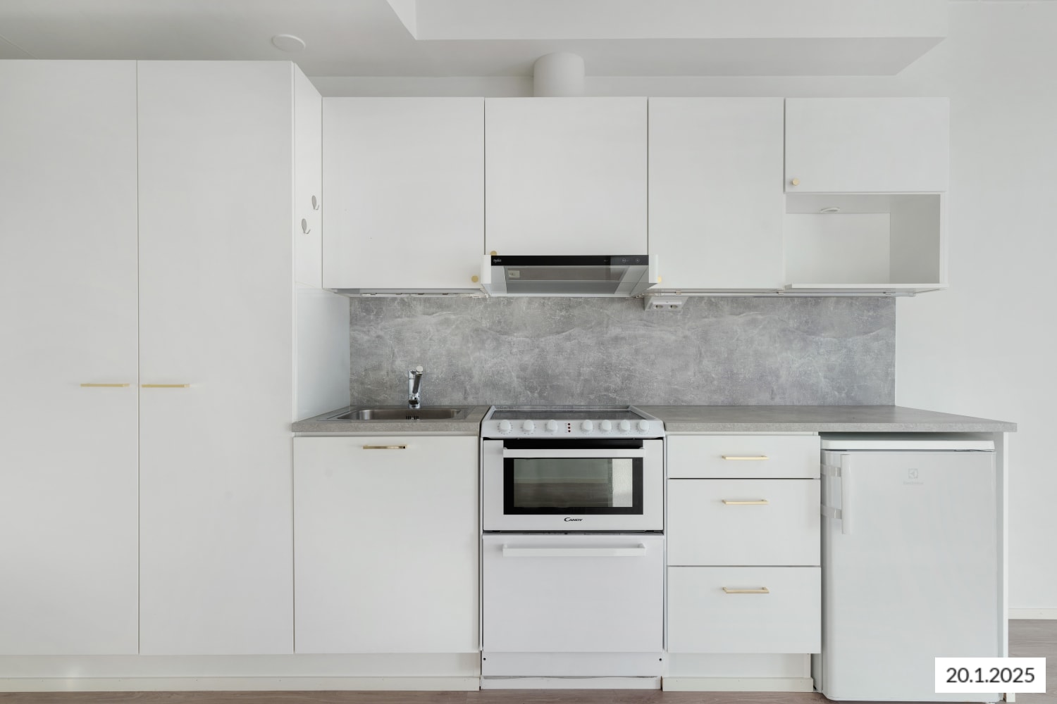 Soman pikkukodin pohjaratkaisu on selkeä ja avoin. Keittiö ja olohuone yhdistyvät viihtyisäksi oleskelualueeksi, joka on helppo kalustaa kodikkaasti. Tilan lattia on vaaleaa laminaattia. Seinät ovat valkoiset. Keittiökaapistot ja kaikki komerot ovat kotimaista Kankarin kalusteen tuotantoa. Keittiössä kaapistojen ovet ovat raikkaan valkoiset ja vetimet ovat harjattua messinkiä. Ylä- ja alakaappien välisessä tilassa on harmaa laminaatti ja työtaso on samaa sävyä. Varusteena on on jääkaappi ja liesi. Kokonaan laatoitetun kylpyhuoneen seinät ovat valkoiset ja lattiat vaalean harmaat. Kylpyhuoneen kalusteet ovat valkoisia. Pesukoneelle ja kuivausrummulle on varaus. Kodin valoisuutta lisää etelään suuntautuva ranskalainen parveke.