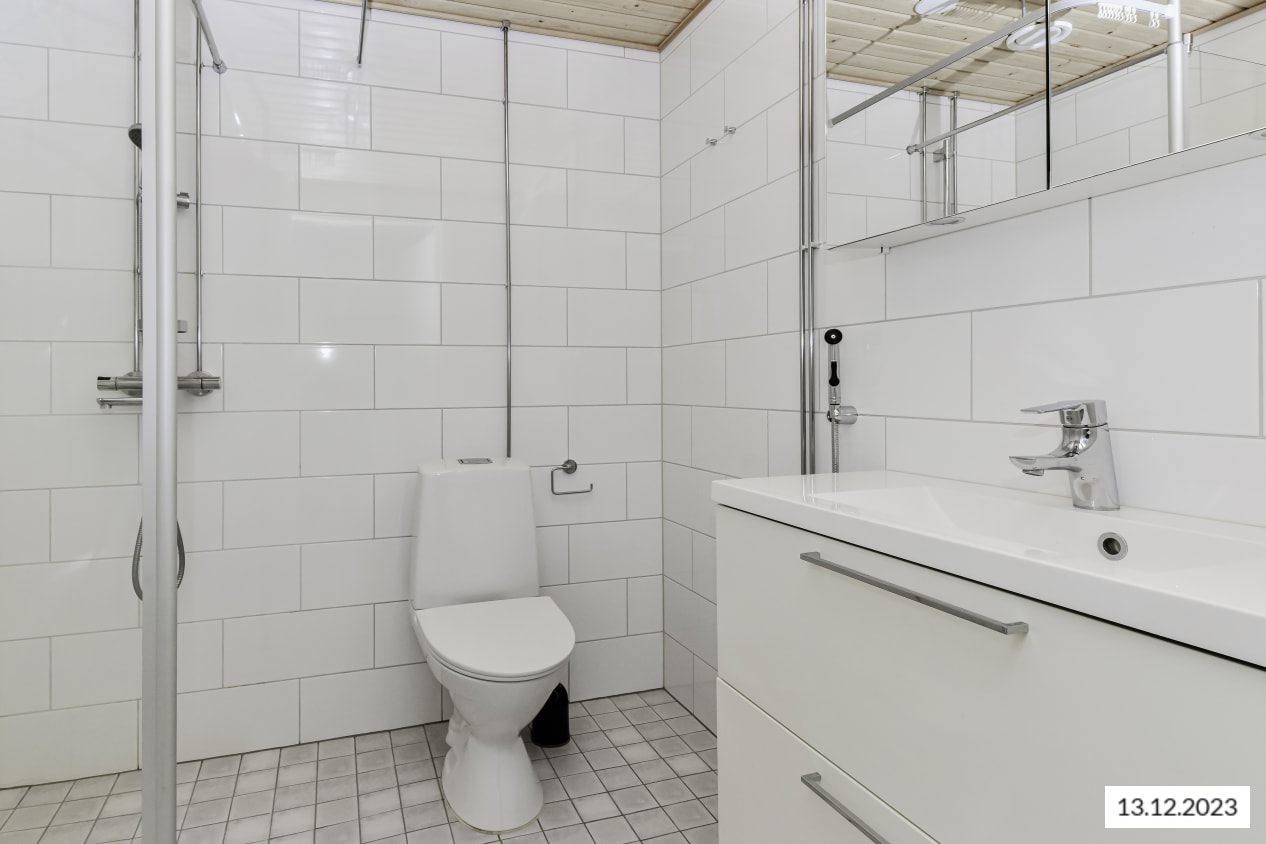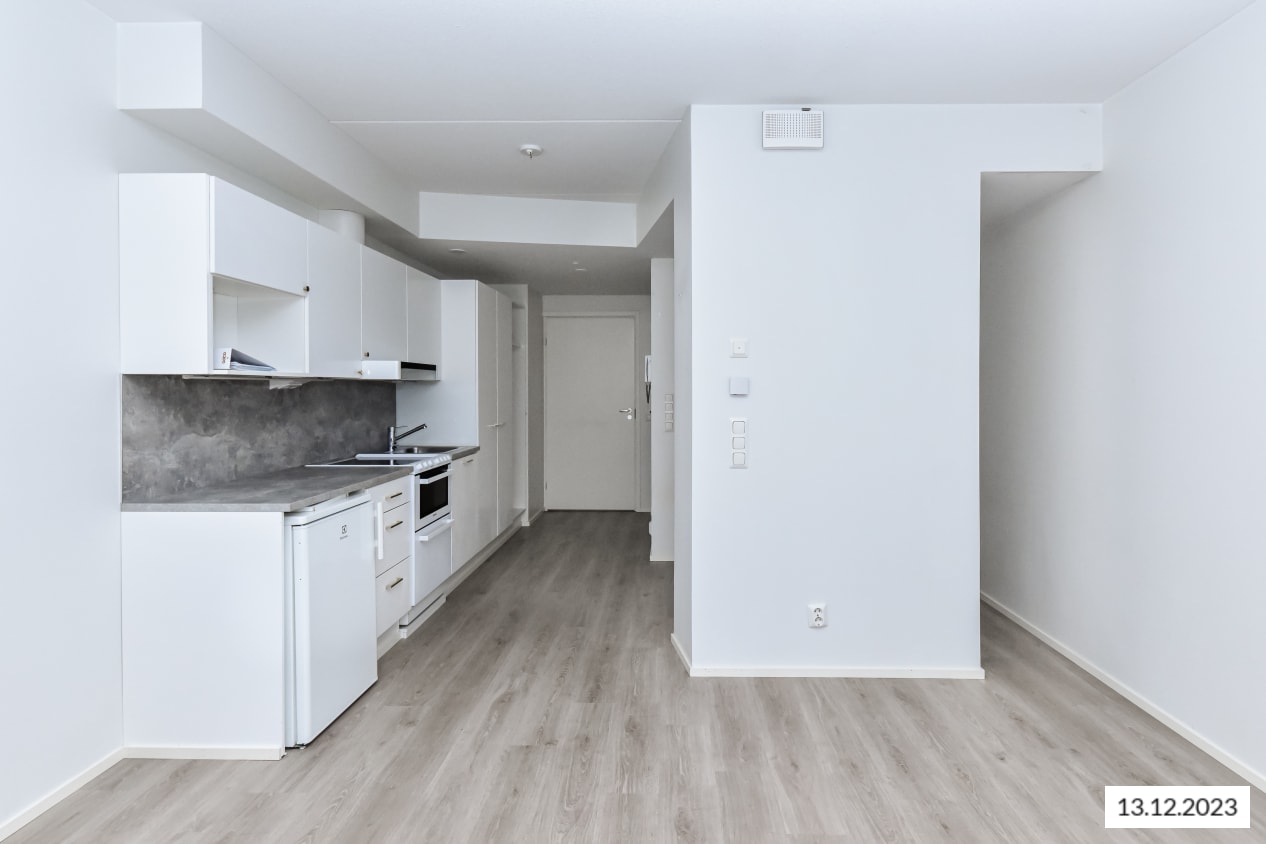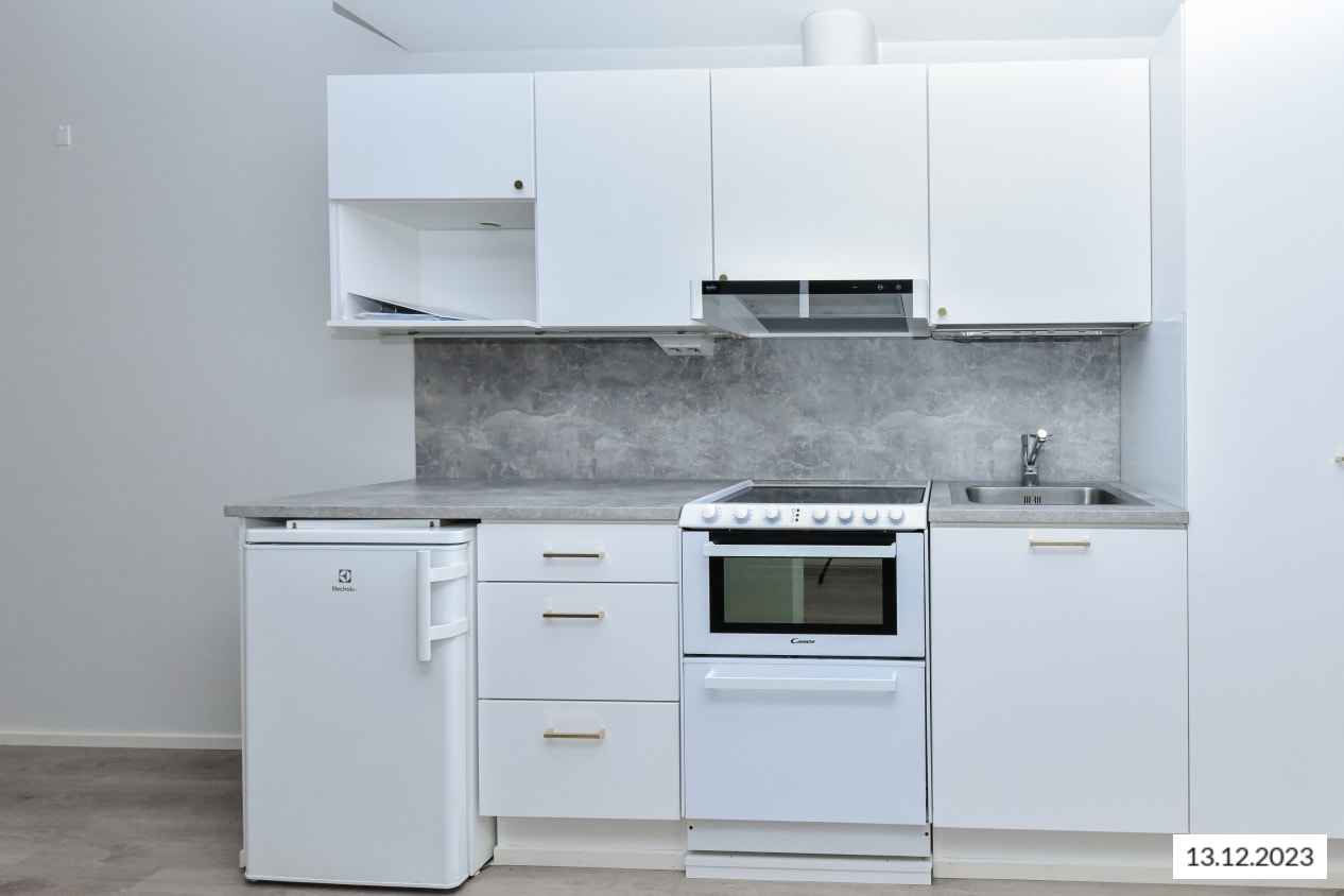Soman pikkukodin pohjaratkaisu on selkeä ja avoin. Keittiö ja olohuone yhdistyvät viihtyisäksi oleskelualueeksi, joka on helppo kalustaa kodikkaasti. Tilan lattia on vaaleaa laminaattia. Seinät ovat valkoiset. Keittiökaapistot ja kaikki komerot ovat kotimaista Kankarin kalusteen tuotantoa. Keittiössä kaapistojen ovet ovat raikkaan valkoiset ja vetimet ovat harjattua messinkiä. Ylä- ja alakaappien välisessä tilassa on harmaa laminaatti ja työtaso on samaa sävyä. Varusteena on on jääkaappi ja liesi. Kokonaan laatoitetun kylpyhuoneen seinät ovat valkoiset ja lattiat vaalean harmaat. Kylpyhuoneen kalusteet ovat valkoisia. Pesukoneelle ja kuivausrummulle on varaus. Kodin valoisuutta lisää etelään suuntautuva ranskalainen parveke.