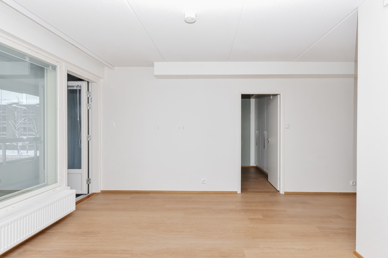 Selkeälinjaisen kaksion vaaleat pinnat miellyttävät silmää ja se on helppo kalustaa omaksi kodiksi. Olohuoneen kulmaukseen sopii ruokailutila, joka yhdistyy keittiöön avoimen tason kautta. Suojaisa lasitettu parveke on kesäaikaan kuin lisähuone.