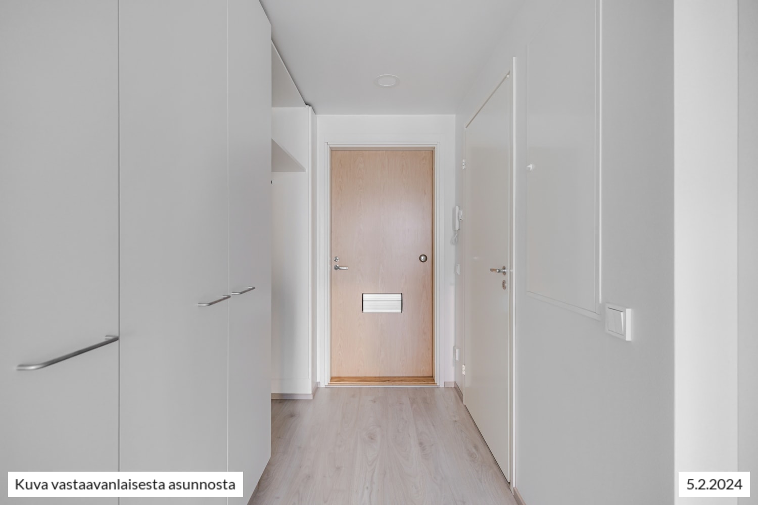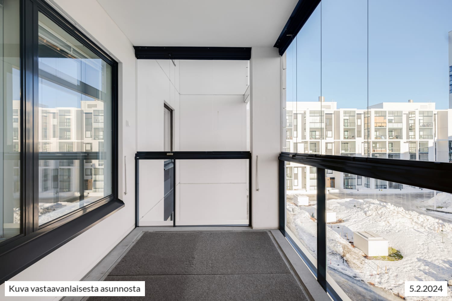 Asuntoihin kuuluu joko lasitettu parveke tai ranskalainen parveke, ja ikkunoissa on sälekaihtimet.
