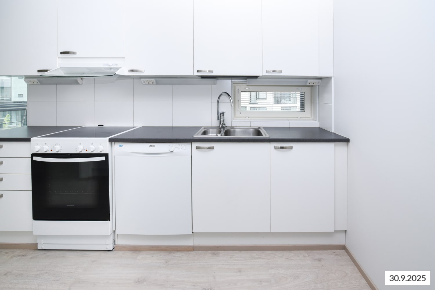 Keittiöstä löytyy astianpesukone, keraaminen liesi ja jääkaappi. Vaatehuoneessa on runsaasti säilytystilaa, ja sälekaihtimet ikkunoissa ovat tarpeellinen lisä viihtyisyyteen.
