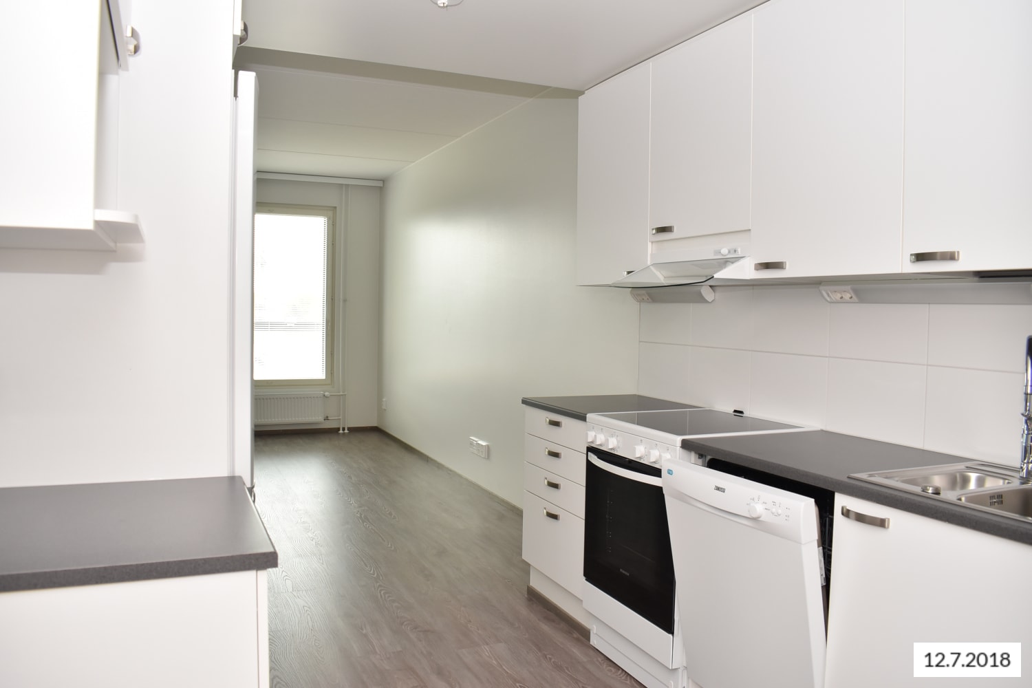 Keittiö on erotettu sopivasti olohuoneesta, silti samaa, avaraa tilaa. Kesällä voit jatkaa oleskelutilaa parvekkeelle. Moderni, vaaleasävyinen keittiö on varusteltu induktioliedellä, jääkaappipakastimella tai jenkkikaapilla sekä astianpesukoneella. Välitila on laatoitettu helppohoitoisella, valkoisella laminaattilevyllä.