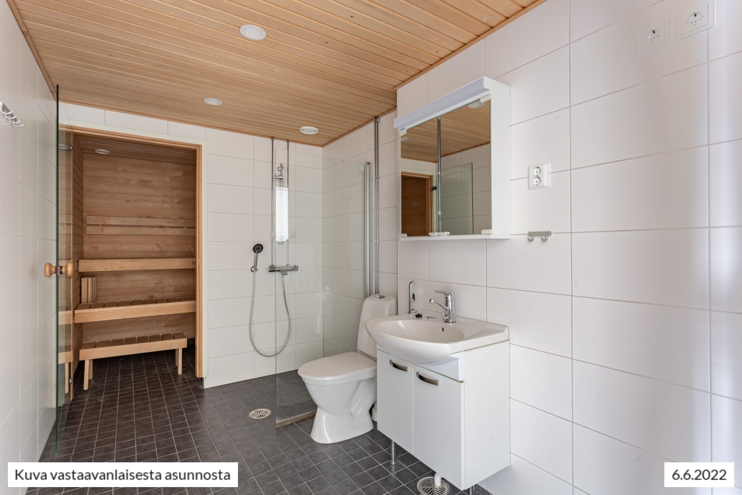 Modernissa kaksiossa on kaikki, mitä tarvitset viihtyisään asumiseen. Omassa saunassa rentoudut kiireisen päivän päätteeksi, ja löylyjen jälkeen on mukava mennä vilvoittelemaan lasitetulle parvekkeelle.