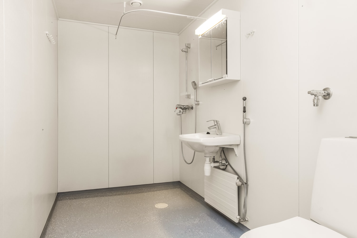 Asuinhuoneissa on laminaattilattiat ja kylpyhuoneessa kosteiden tilojen muovimatto.