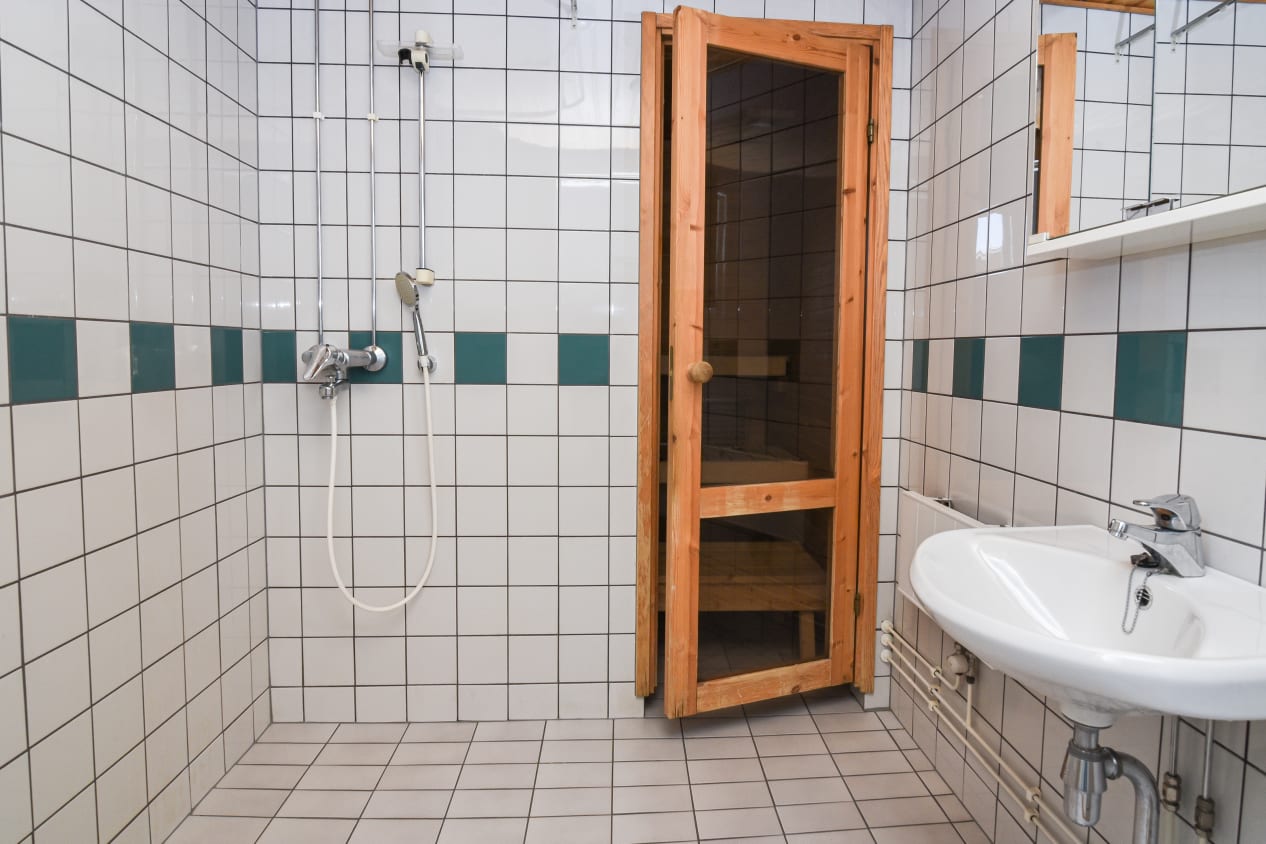 Keittiön varustukseen kuuluu jääkaappipakastin, astianpesukone, lattiauuni ja perinteinen 4-levyinen liesi. Kaapistot ovat valkoiset puisilla yksityikohdilla ja työtasot terästä tai valkoista laminaattia. Kylpyhuoneessa on liitännät pyykinpesukoneelle.